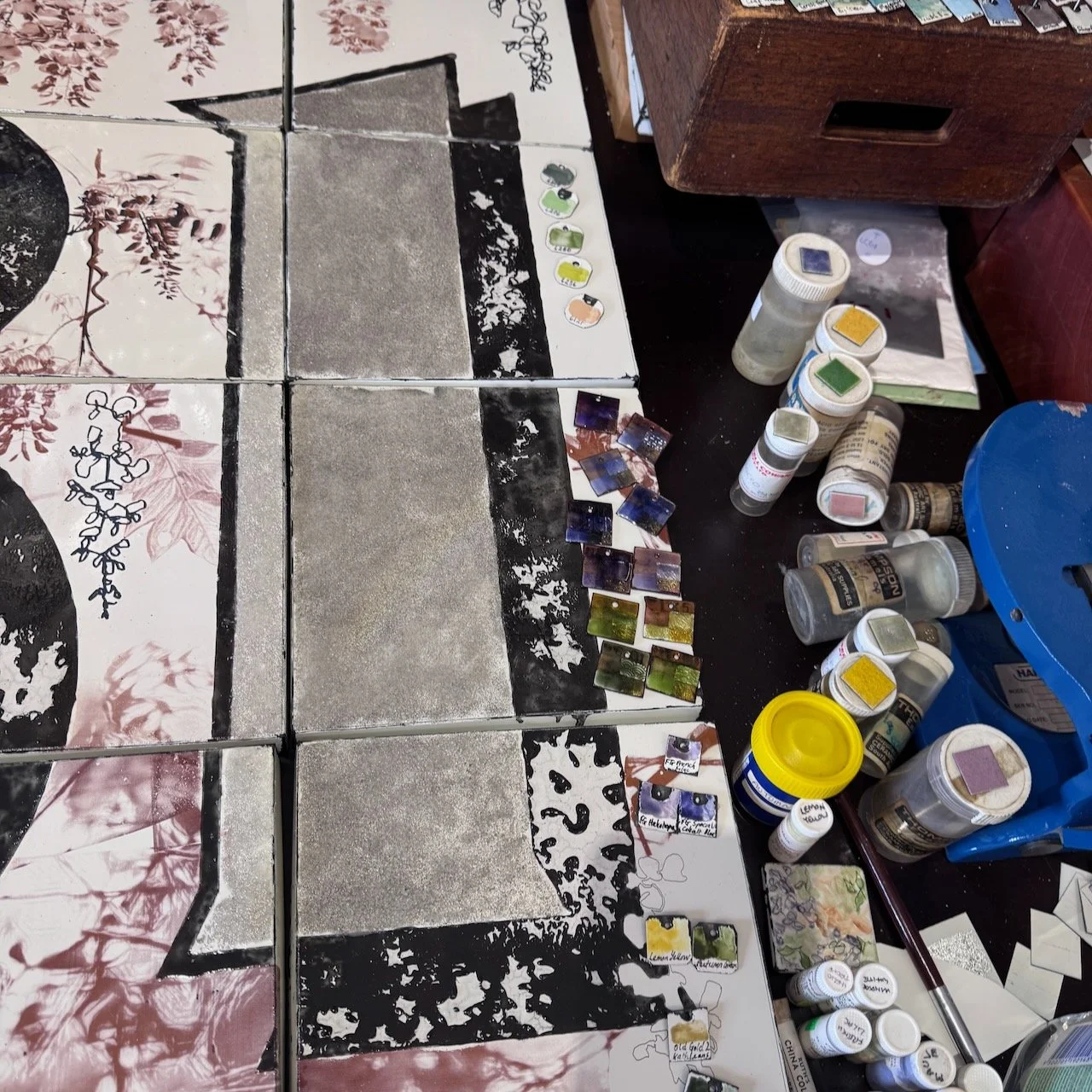 The wisteria mural is an experimental piece, testing the longevity of materials and processes outside. I also wanted to create a seamless fixing system for making a larger work out of 20x20cm panels.